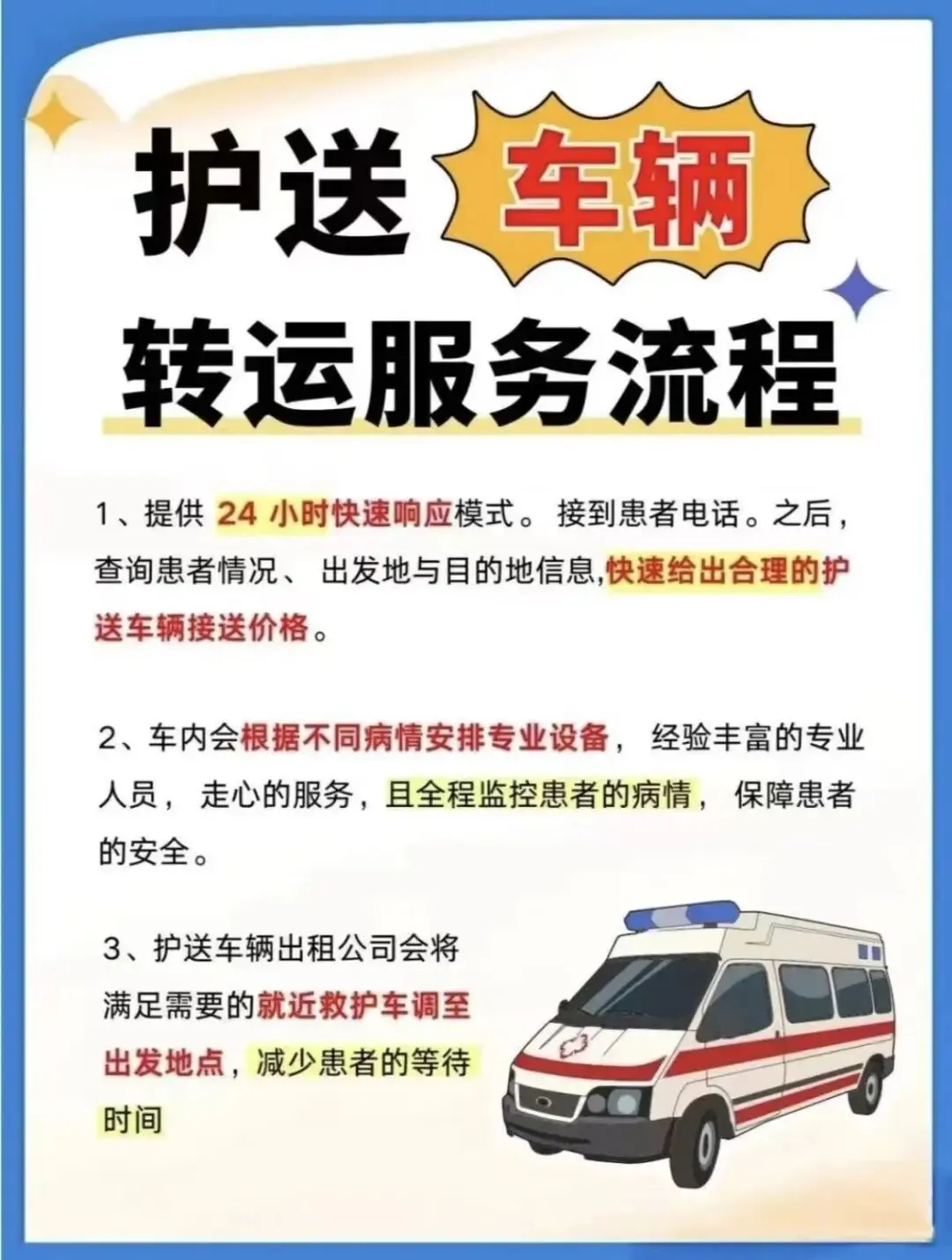 📞 特殊需求沟通如有重症患者或需要使用特殊设备,请提前告知以便协调安排