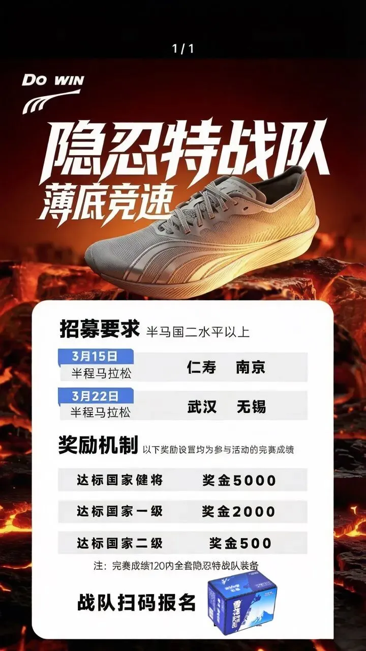 多威隐忍特战队招募2026仁寿半程马拉松、2026南京半程马拉松、2026无锡马拉松&2026武汉马拉松已获得以上四大赛事参赛资格且半马国二水平及以上精英跑者,奖励机制详见图片!
