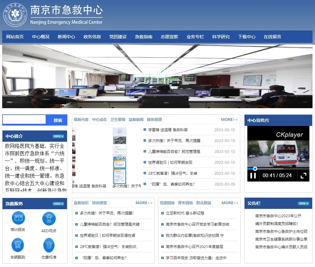 南京市急救中心始建于1956年8月,是全国最早开展院前医疗急救工作的急救中心之一,主要承担南京地区的院前医疗急救、突发事件的现场急救、大型活动的医疗保障和群众自救互救技能的普及教育任务。