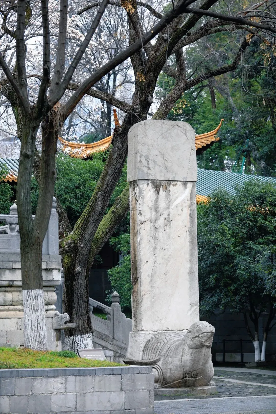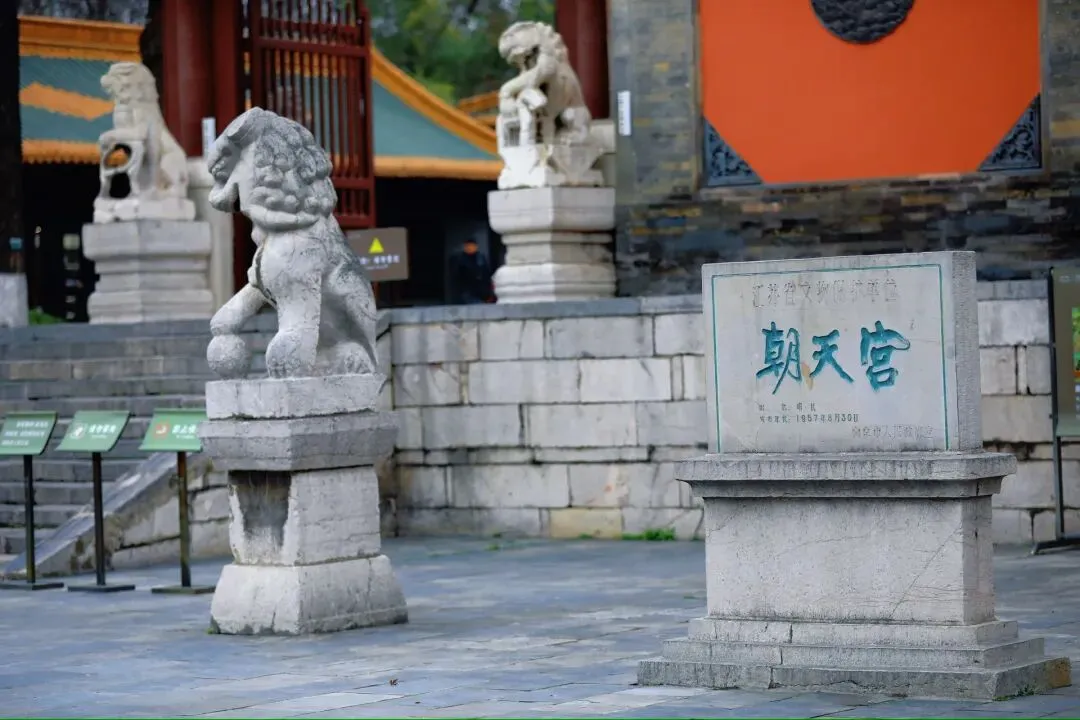 碑高近6米,分碑首、碑身、碑座三部分。碑首为浮雕云龙,刻划精细;碑身两侧饰有蜿蜒龙纹;碑座龟趺形,昂首圆目。形态生动。碑文1000余字,记载了明初朝天宫的定位、规模。及成化年间重修的始末,是研究明代朝天宮沿革、规制、布局等的重要史料。