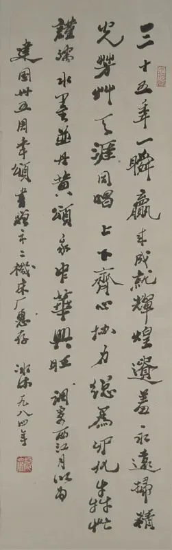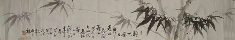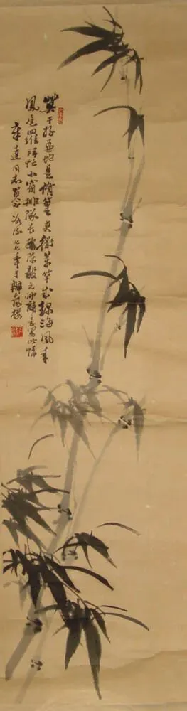 画竹是中国画传统题材,前人有“何可一日无此君”、“看竹何须问主人”句。画竹往往是画家寄记情怀,寓物咏志。历代写竹名家辈出,如五代的黄荃、徐熙,宋代文同,元代的赵孟顺、倪瓒、李衍、明代宋克、王绂、夏昶,清代的金农、郑燮等。而近现代一些画家写竹非涉于纤媚,即过于粗豪。而冰流先生画竹远师文与可,近法诸升、郑板桥。冰流先生笔下墨竹图,刚劲挺拔,婆娑招展。画竹枝竹叶能相生相让,浓淡相依、枝叶间错,折旋向背,各具姿态,曲尽生意。写竹枝多以疾徐有致的中锋写出,用笔如绵里藏针,写出竹子挺然有致的风姿。用以寄记他崇尚气节的深意。1975年春他画赠我一幅墨竹图,并以他秀逸多姿的板桥体题自作诗一首:“步枪小米打江山,独赖先生作扁担。挑罢军粮挑子弹,几回突破困难关。”皖南山区在战争年代,先生与竹子结墨缘,在戎马倥偬的军旅生涯中,仍不忘诗书画。他的诗为文人雅士笔下的墨竹完全赋以了新意。他也喜在竹画上题“多栽绿竹亲君子”之类句子,“亲君子,远小人”是诸葛亮出师表箴言。夏老笔下之竹千姿百态,凌霜劲节,正如夏老高洁的人品坦荡正直、光明磊落。他对青年热忱关怀爱护,不遗余力。
