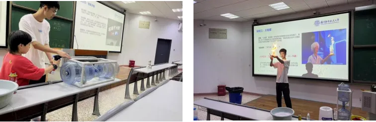课堂实验带同学们围绕着火箭点火原理、空气动力学、马格努斯效应、内燃机原理等航天航空相关知识,为大家带来一场绝妙的神奇物理实验。近距离的观看体会,使得那些藏在课本里的公式突然有了温度与光芒,让孩子们明白原来科学不是枯燥的公式,而是带着人类好奇心飞翔的翅膀。对航空航天事业有了更加明确的梦想,培养孩子对科学的兴趣和动手操作能力,为学习生活打下基础。