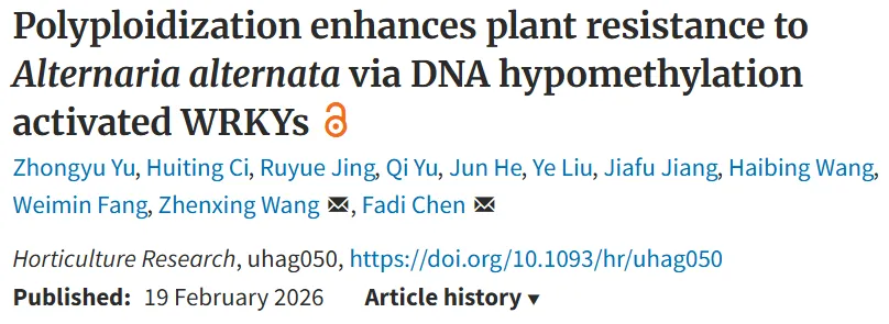本研究揭示了菊花多倍化通过CHH 位点特异性低甲基化激活WRKY转录因子(尤其是 ClWRKY103),进而协同调控SA和JA信号通路增强对链格孢菌抗性的表观遗传调控通路。该研究首次建立了多倍化、表观遗传重编程与植物病原菌防御之间的直接联系,不仅丰富了植物多倍化介导生物胁迫抗性的分子机理,还为利用表观遗传编辑技术(如CRISPR/dCas9-TET1)定向改良作物抗病性提供了新的思路和靶标,对菊花及其他园艺作物的抗病分子育种具有重要的指导意义。