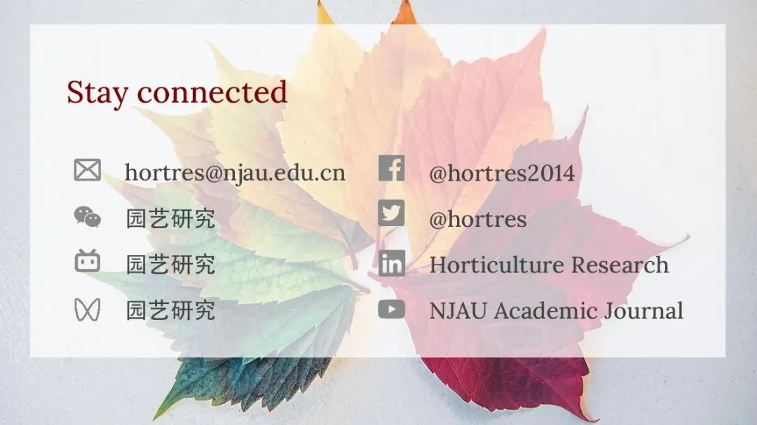扫码添加小编微信,拉你进入《园艺研究》作者交流群,群内不定期开展主编答疑会、作者分享会、审稿人培训会等高质量活动。