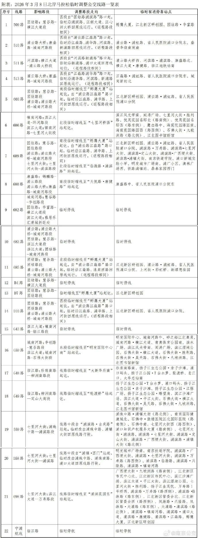 2026南京北岸马拉松交通管制公告