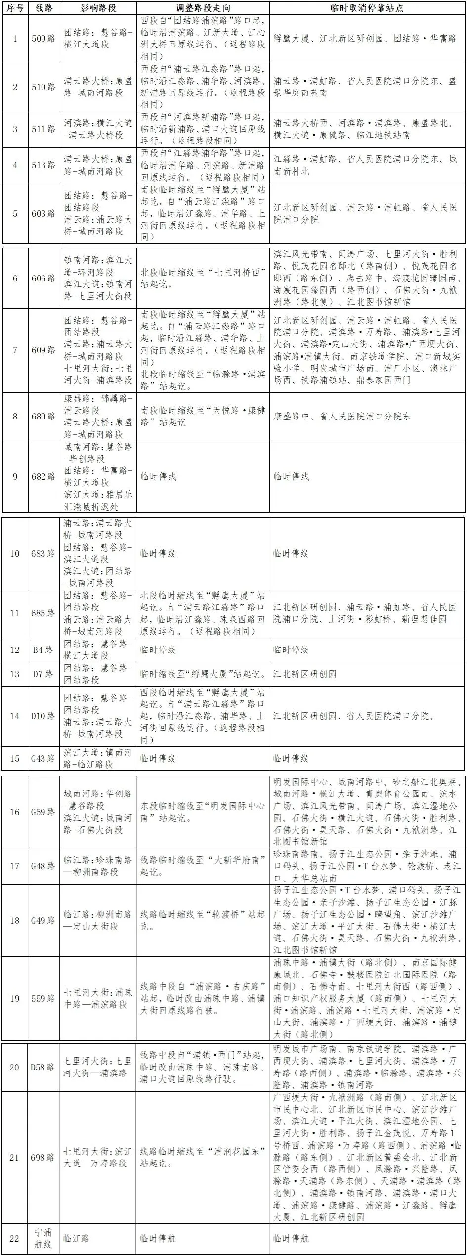 届时公交509路、510路等21条线路及1条轮渡航线采取临时缩线、绕行、停运等措施,待赛事结束后所涉及线路即恢复原线运行,具体见附表。