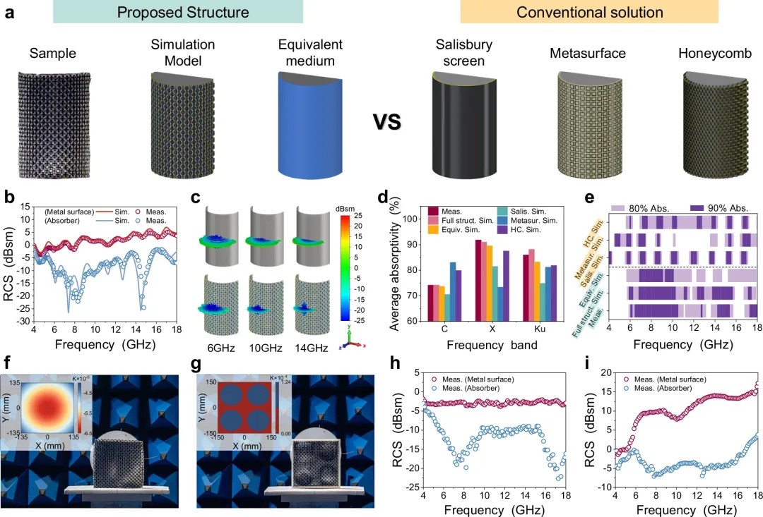实现“动态切换”超宽带吸收:通过机械调控单元密度,突破Rozanov极限,实现频段可重构。
