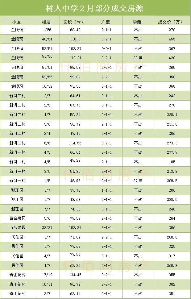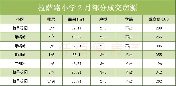 拉萨路小学2月成交分析: