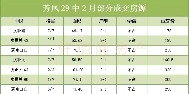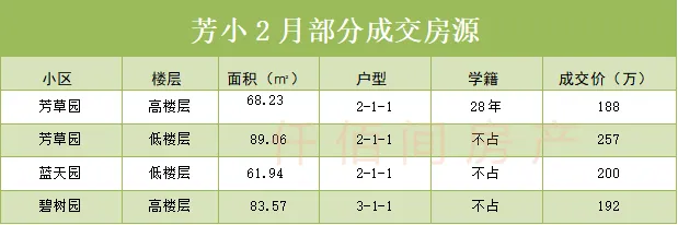 2月,芳小片区成交房源5套左右,和上月成交量基本持平,相比去年同期,交易量有30%以上的差距。