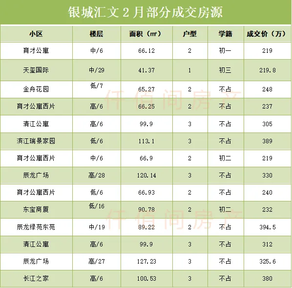 截至2026 年 3月初,双汇文学区板块2月份共成交30套左右,银城汇文共成交40套左右,汇文片区总签约80套左右,汇文片区(银城+ 汇文)正处于 “量价回暖、小户型上升、低总价为王” 的旺季行情,是学区房 “小阳春” 的核心板块之一。