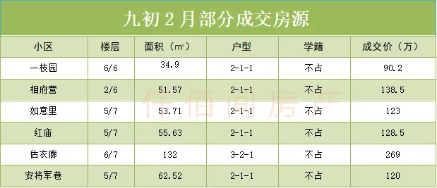 2月九初片区共成交房源15套左右,相比上月下降超三成,其中长小九初4套,南师九初8套,洪小九初4套,和去年同期相比,交易量也有20%以上的差距 ,假期因素是影响交易的主要因素。