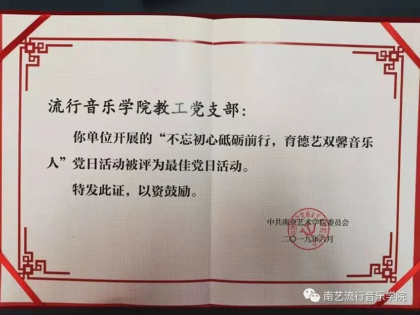 流行音乐学院党总支将以此次表彰为契机,激励全院党员师生在校党委的领导下奋发进取、有所作为,认真贯彻落实校第十次党代会精神,不断开创学院事业高质量发展的新局面。