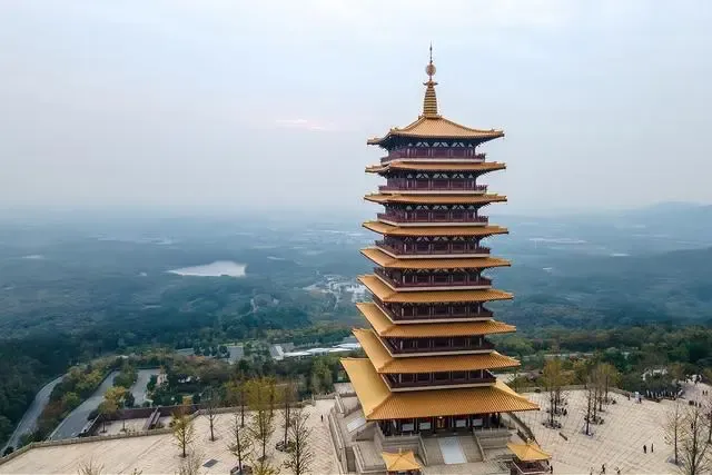 【佛顶塔】是佛顶圣境的标志性建筑之一,建筑高度约88米,建筑面积5065平方米,九级四面,与明代弘觉寺塔相为呼应,重现历史上牛首山“双塔”的恢弘格局。游览结束后返程,结束愉快的旅行!