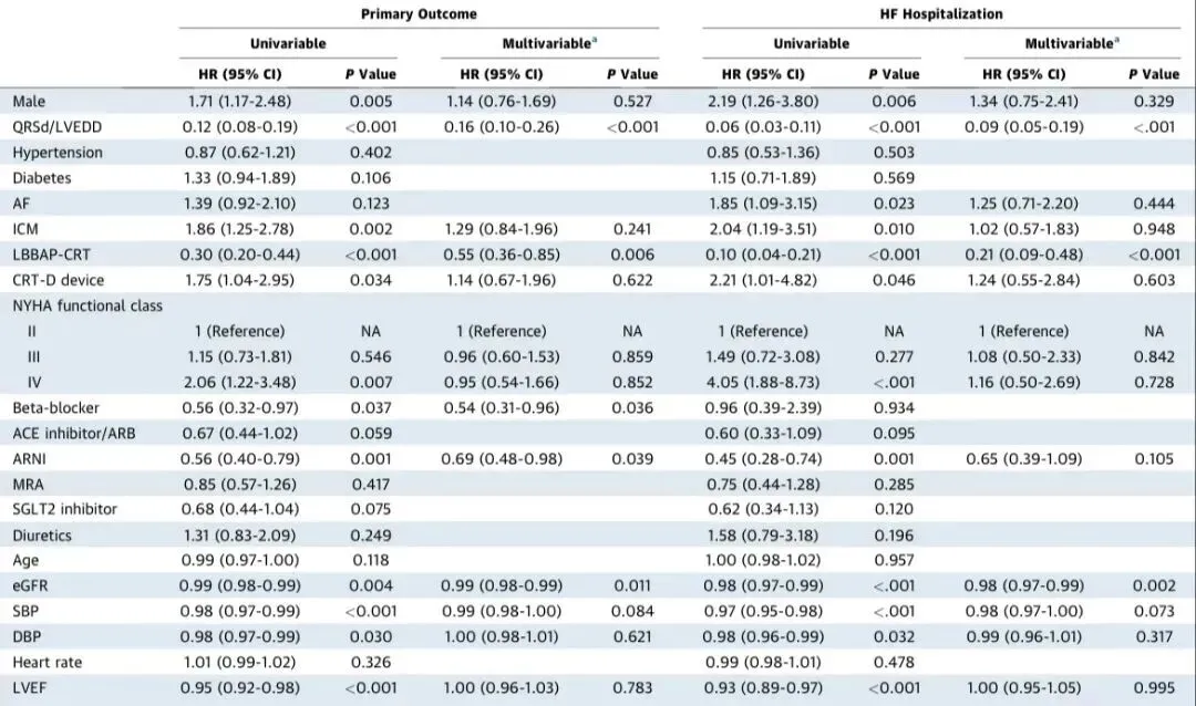 表2.主要终点和心衰住院的Cox回归分析