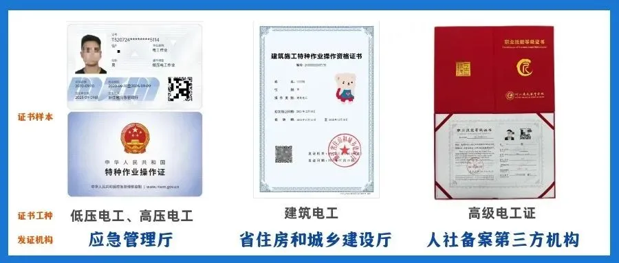 图中这三种就是现在最常见,考得最多的电工证,今天就详细给大家介绍一下,看完后,大家可以选择适合自己的那一类去报考哦~