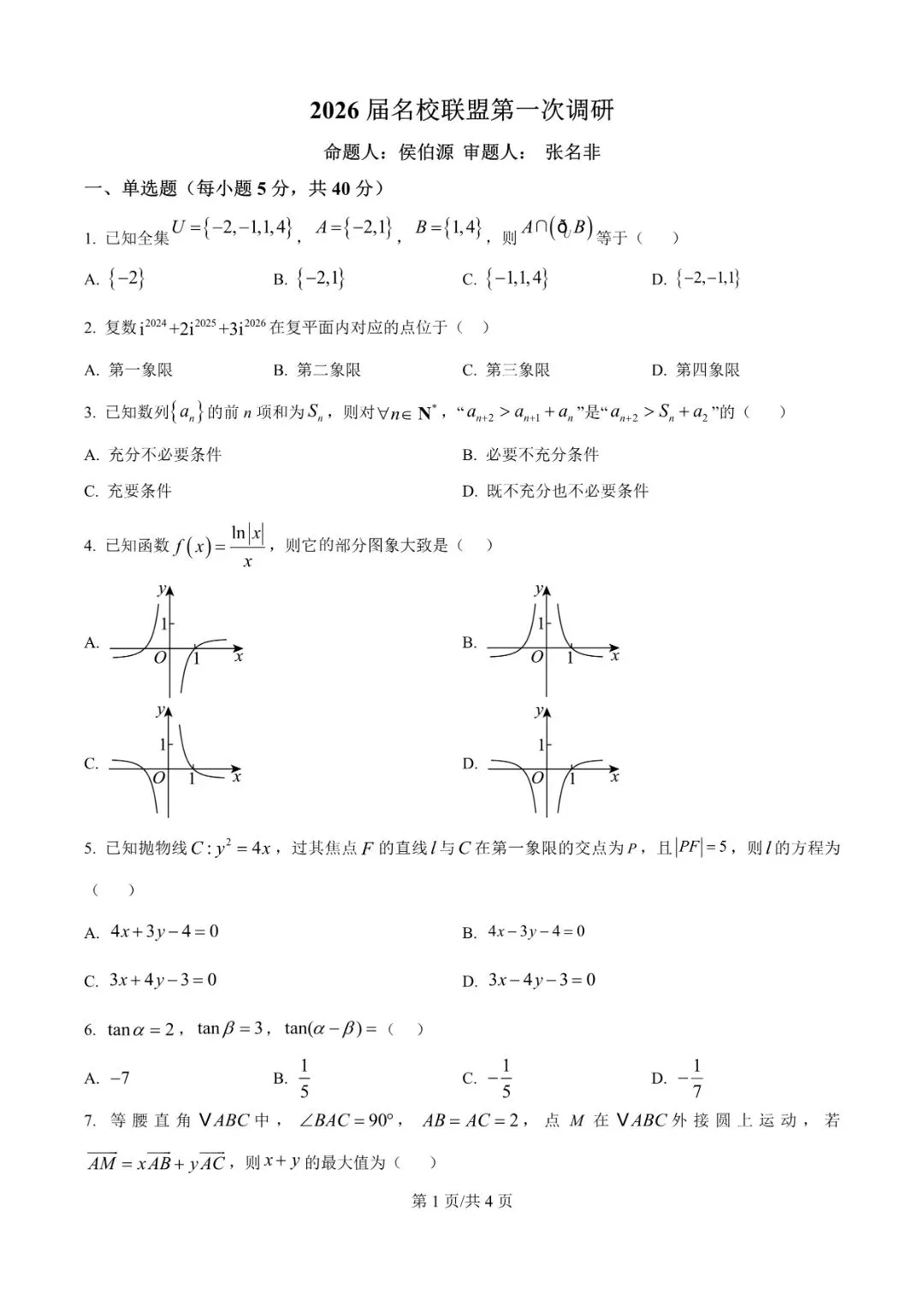 2026届江苏南京名校联盟高三下学期一模试题