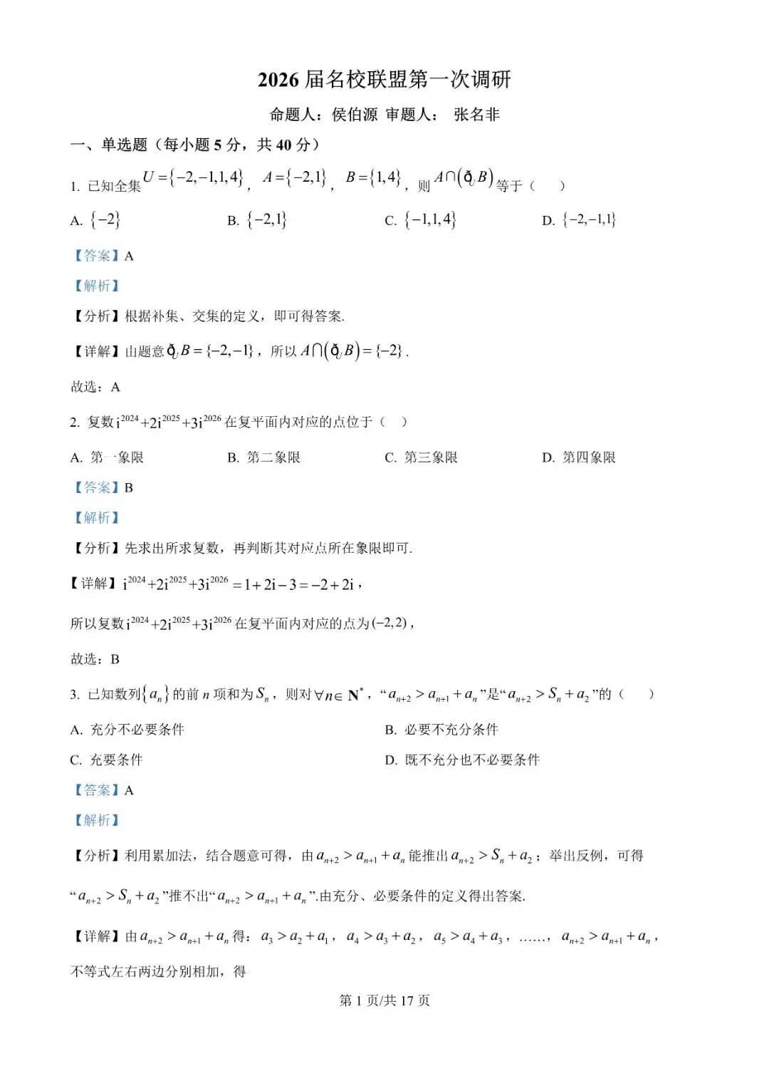 本套试卷免费下载
