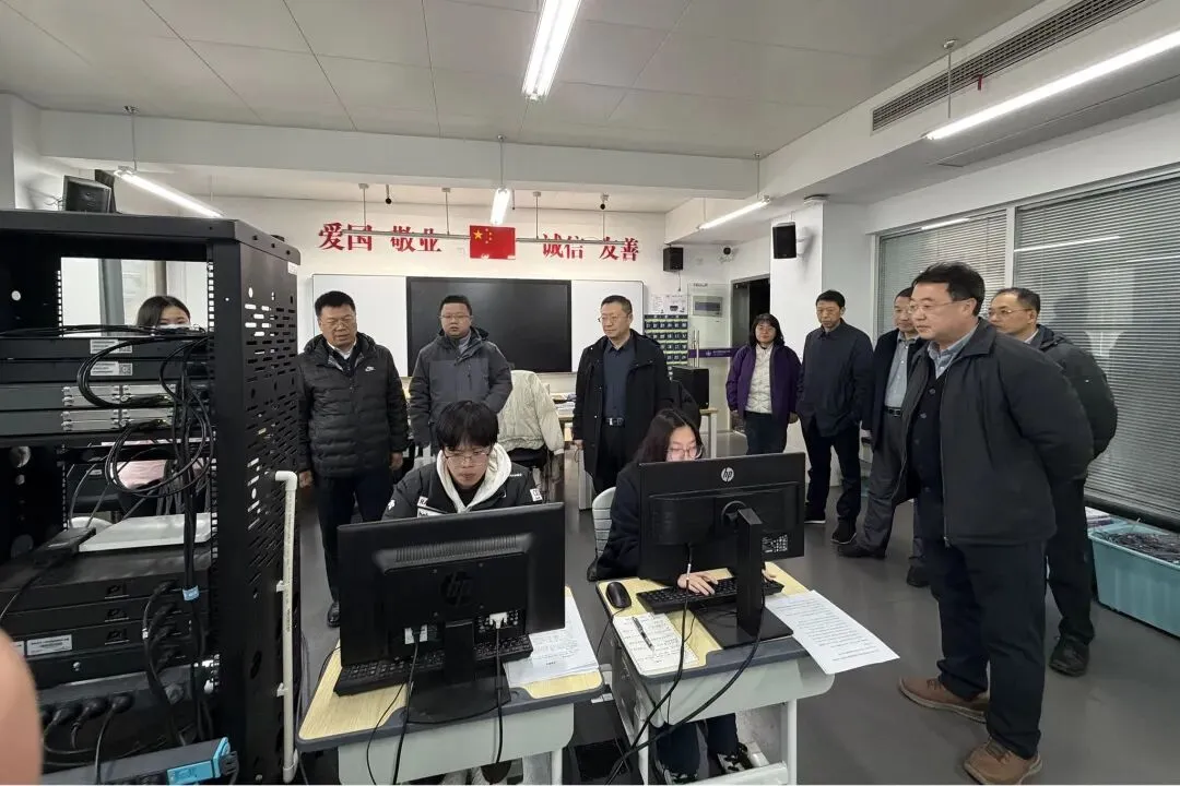 慰问中,田家英一行详细询问训练进展,肯定师生“舍小家、顾大赛”的奉献精神,勉励队员“精益求精,勇创佳绩”,强调技能大赛是检验职教成果的重要平台。章宏表示,学校要深化以赛促教、以赛促学,深化产教融合,培养高素质技术技能人才。随后,姚峰、薛飞又前往莫愁路校区,慰问其余备战队伍,向师生送去深切关怀与暖心问候。