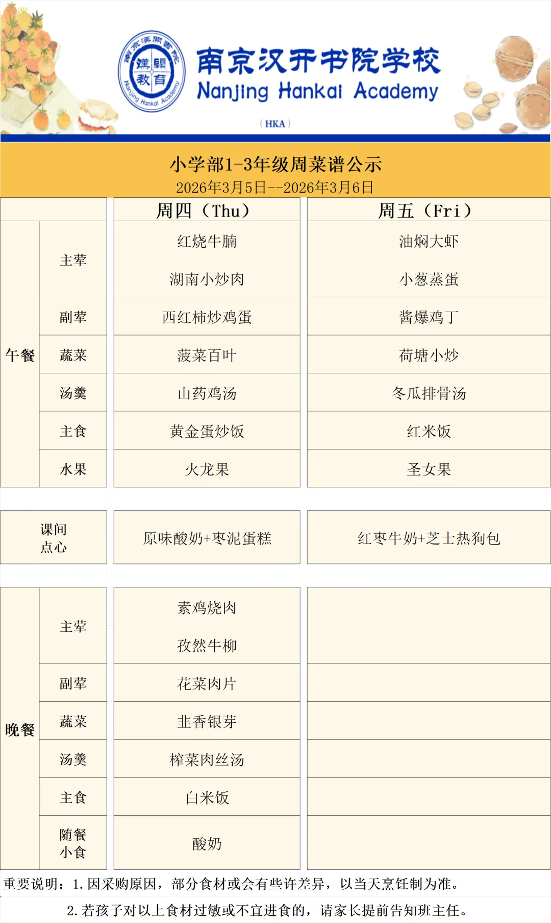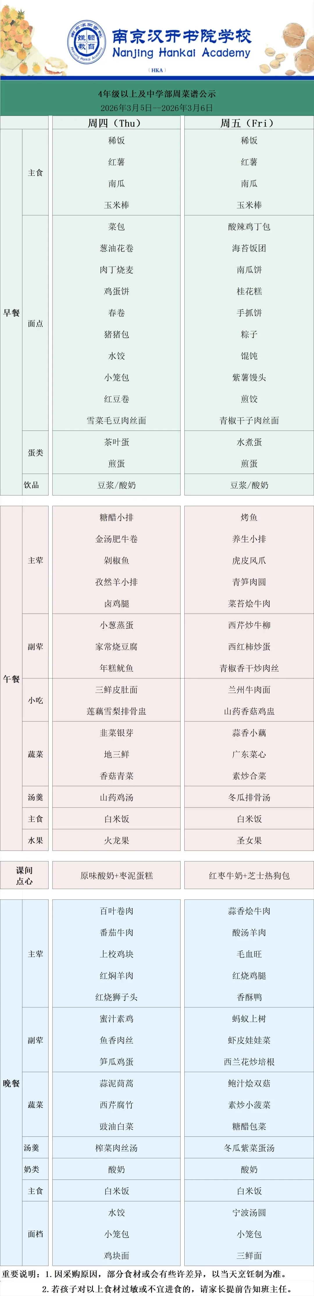>【Hi,开开!】南京汉开周菜谱(3.5-3.6)