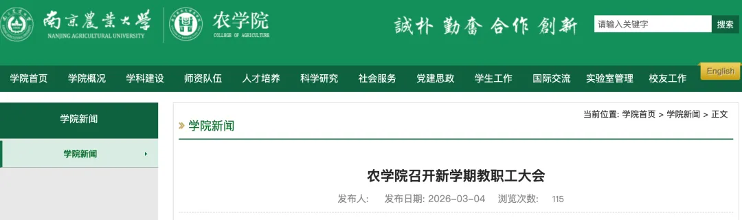此次会议明确了学院新学期发展方向与工作重点,凝聚了全院思想共识与工作动力。农学院将在校党委领导下,团结带领师生真抓实干,推动学院事业再上新台阶,为学校建设农业特色世界一流大学贡献力量。