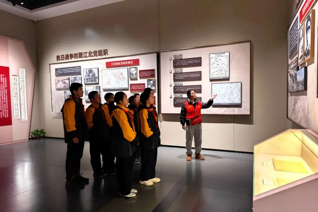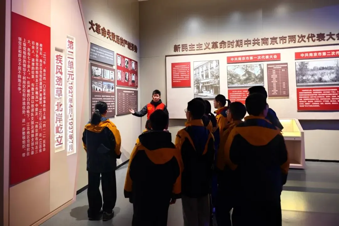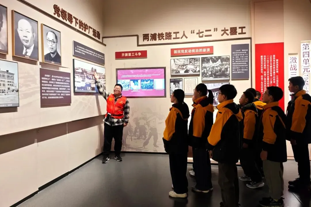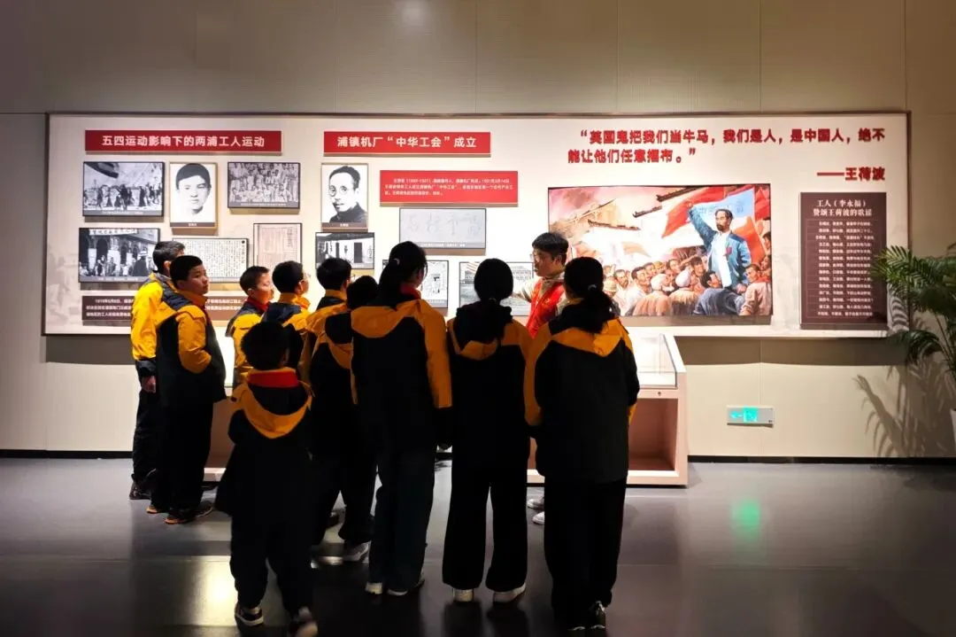 下午,琅琊路小学的同学们成为首批服务对象,经过专业培训的志愿者化身红色讲解员,用通俗易懂、生动鲜活的语言,结合展陈文物与历史影像,带领孩子们重温浴堂街34号的马克思主义星火、浦口工人运动的峥嵘岁月,解读江北新区的红色发展脉络。