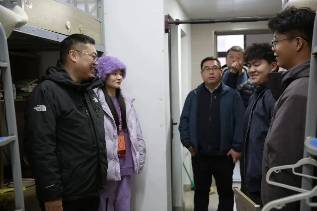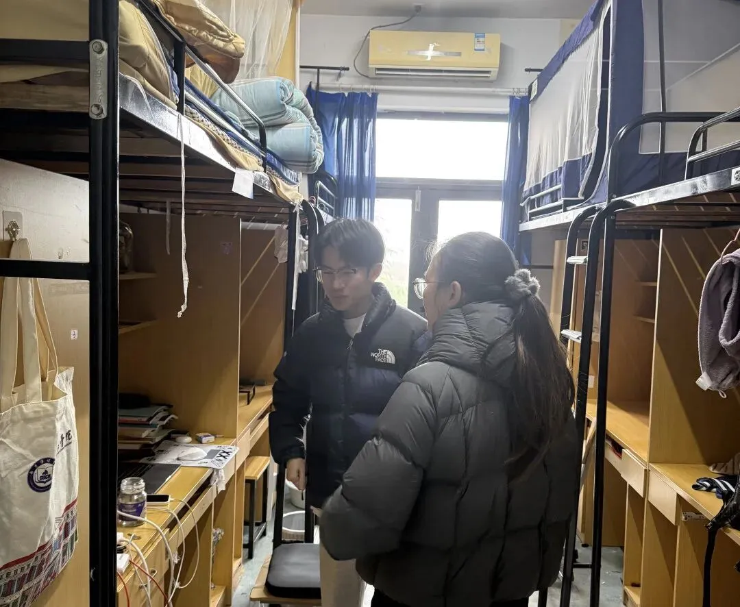 走访过程中,校、院领导与辅导员老师逐一走进各宿舍,与同学们亲切交流,详细询问大家的返程情况、假期生活见闻、返校适应状态及新学期学习规划,认真倾听同学们的需求与建议,叮嘱大家尽快调整作息、收心归位,以饱满热情投入新学期学习生活。