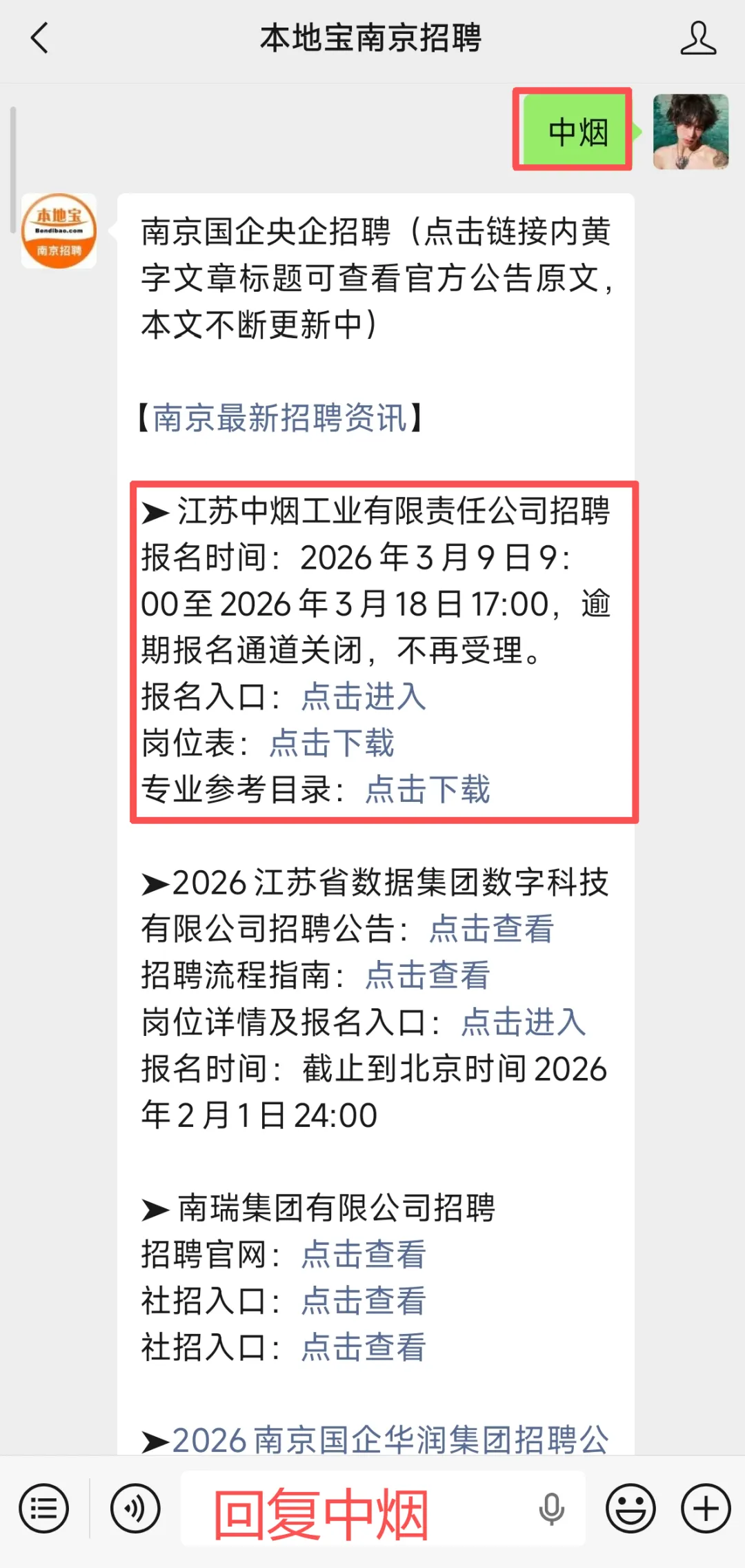 回复【地铁】获取南京地铁招聘最新信息