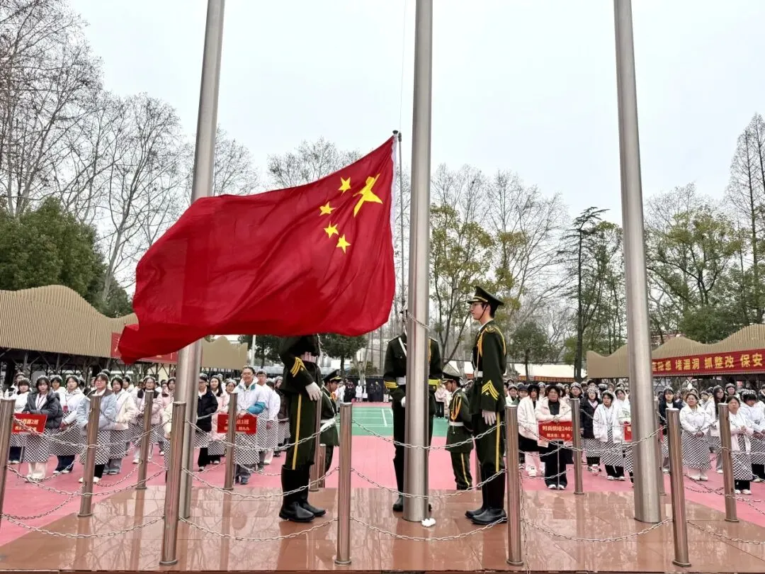 庄严的升旗仪式拉开开学典礼序幕,在全体师生注目礼中,五星红旗冉冉升起。学生代表号召同学们在新学期树立匠心、锤炼技能、不负韶华,用奋斗书写青春答卷。班主任随后寄语,勉励学子珍惜时光,苦练基本功,涵养厨德,将工匠精神融入日常。最后,校领导对新学期重点工作作出部署,明确了奋斗目标。