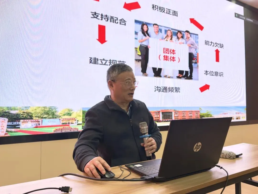 紧接着,学校党支部书记、校长姜峻以“团队建设助我成才”为主题,阐释团队真谛。“团队就是一个声音,统一的目标,一致的行动。”他通过团队与团伙的对比,强调目标明确、沟通交流、团结协作等五大要素,并以“你喜欢感恩,顺利就越来越多”等话语勉励学子。姜校长向各班布置了“开学第一项团队任务”:提出班级口号、确定班歌、制定班级目标、明确成员职责、定期总结修正。