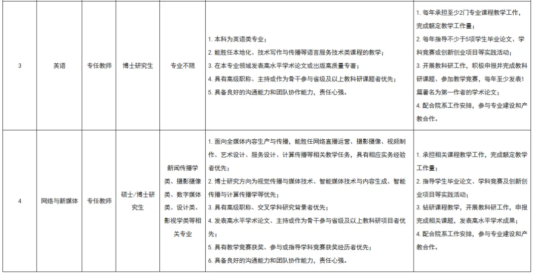招聘岗位信息及具体要求详见附件。