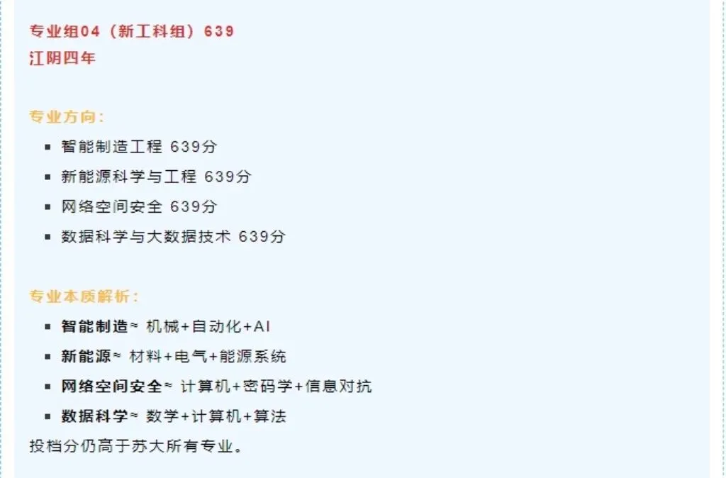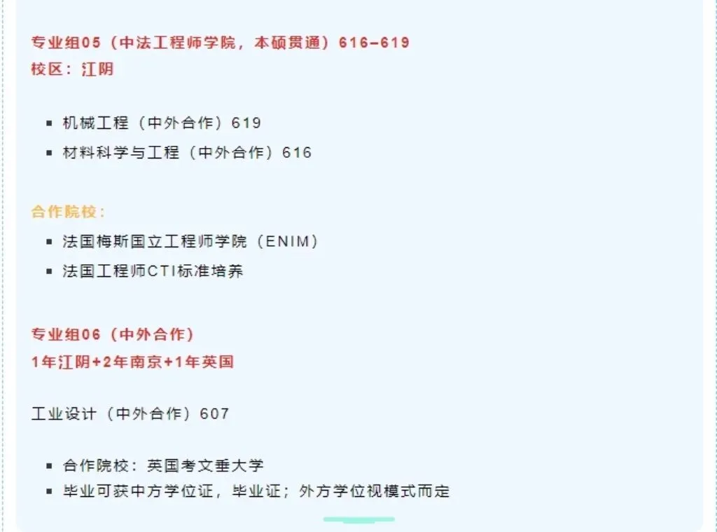 它还有江阴校区四年制新工科布局,以及中法、中英合作培养通道。