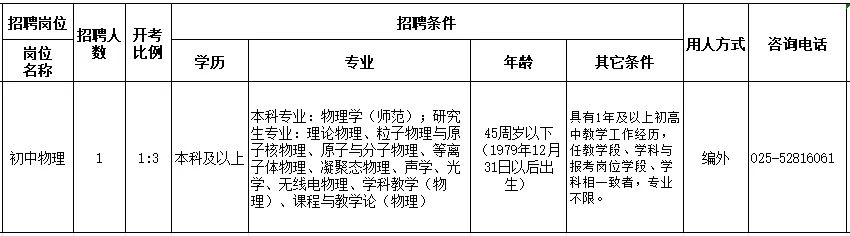 2.同一岗位符合条件的报考人数原则上应在招聘人数的3倍及以上,报名人数未达开考比例将取消招聘计划,并在南京市金陵中学岱山分校网公布。