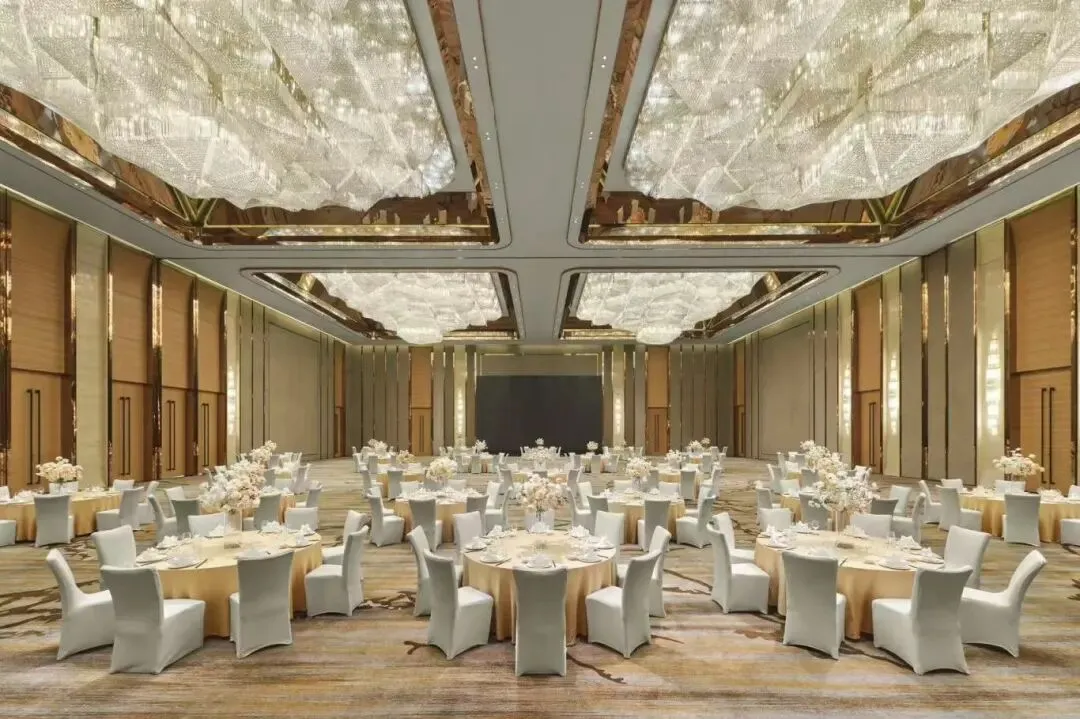 酒店拥有3间超千平的大型宴会厅、1间1917个座位的大剧院、1间极具现代感的金色音乐厅、1间欧式风格的凯旋厅,55间配套设施完善的中小型会议室、近2万平米的超大公共区域及户外露台,是举办大型会议及宴会的优选之地。