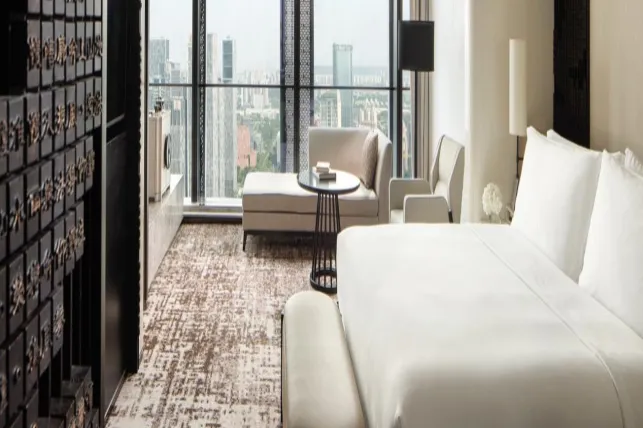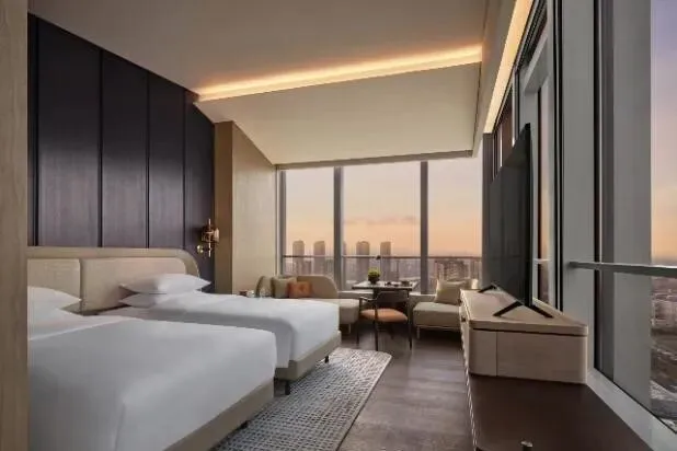 位于全球首例非对称三塔连体商业综合体内。酒店由国内顶级设计团队倾力打造,将艺术设计及现代生活格调与当地人文特色相融合,奢华不失古韵。