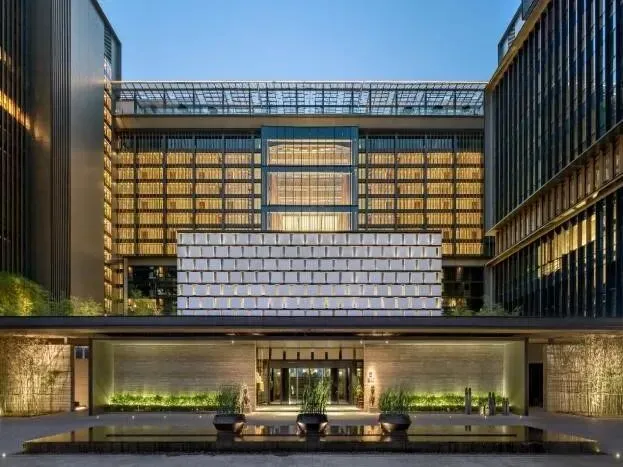 南京涵碧楼酒店以独特地形营造中国院墙围合的皇城风格。两侧主楼由全玻璃帷幕打造,布以涵碧楼品牌独有的水景文化与竹林元素,引领贵宾探索空间设计奥秘,是繁华都市中难得的宁静度假之所。