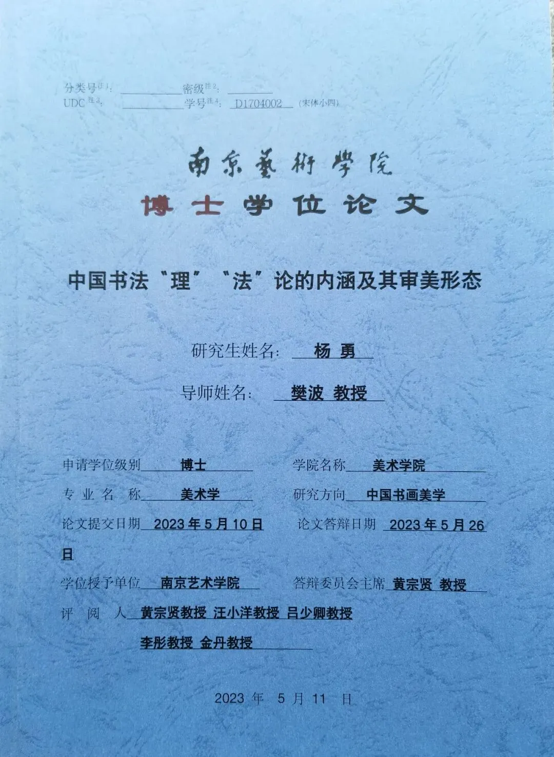 同行推介——【南京艺术学院/2023年博士学位论文】杨勇博士/中国书法“理”“法”论的内涵及其审美形态
