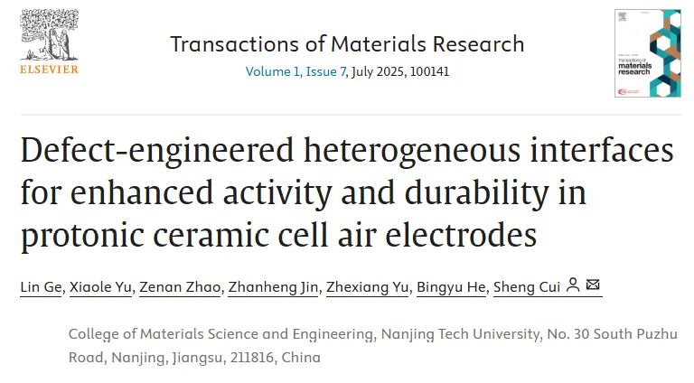 这一研究不仅揭示了缺陷介导异质界面对质子陶瓷电池空气电极性能的关键作用,也为高性能、耐久PCCs电极设计提供了全新思路。