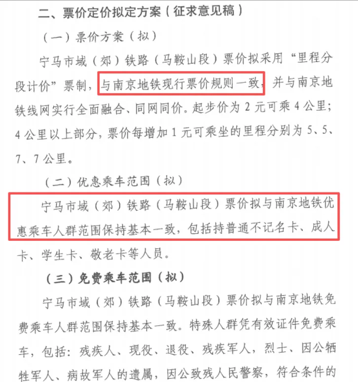 关于宁马城际的票价以及特殊人群的优惠政策等问题,目前也基本上有了答案。