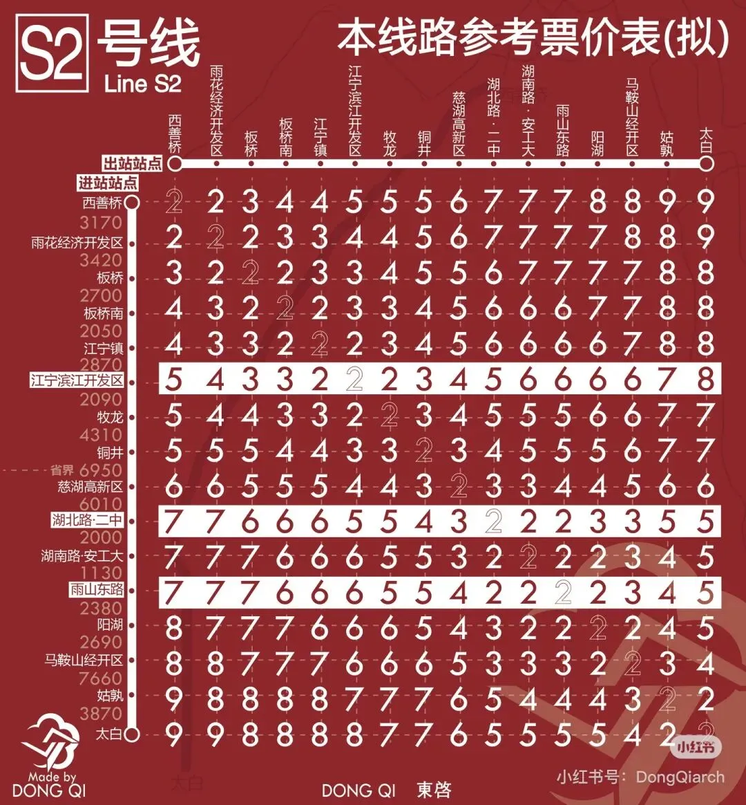 如起步价为2元可乘4公里;4公里以上部分,票价每增加1元可乘坐的里程分别为5、5、7、7公里,全程最高9元封顶。还有不少社交平台博主,自制了各个站点之间的出行价格。