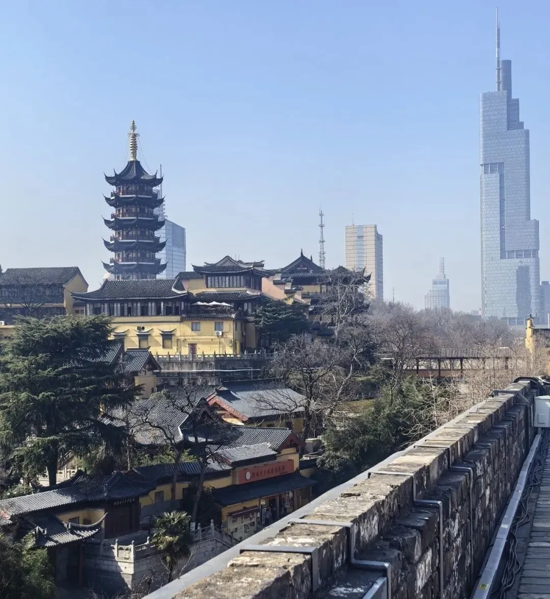 登上了明城墙,一块块青砖黛瓦,仿佛都在诉说着六朝旧事。从朱元璋打败陈友谅、张士诚,到定都南京,再到后来的朱棣迁都北京,明王朝在这里经过了两代帝王,如今,那些故事已尘封为历史,只有这明城墙的一砖一瓦在低诉着经历的前尘往事,站在城墙一角极目远眺,鸡鸣寺的古典、紫峰大厦的现代,遥遥相望,一远古一现代,一矗立一流动,将千年金陵的古今风骨,悉数尽收进眼底。