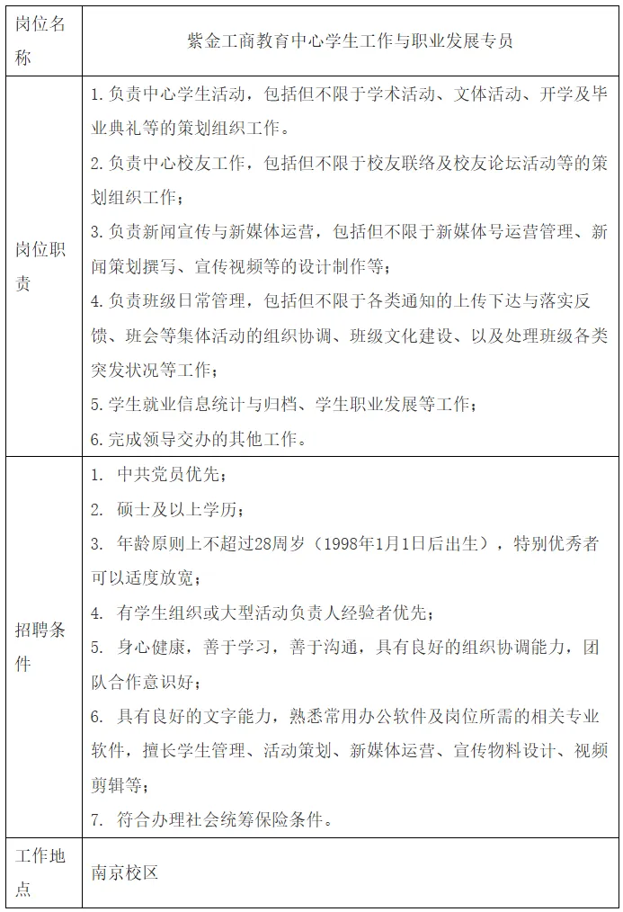 南京理工大学经济管理学院紫金工商教育中心负责此次招聘的问题咨询。