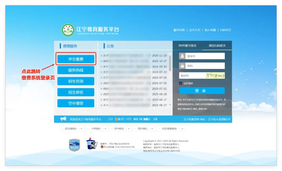 以上江宁区教育系统网上缴费系统是唯一缴费通道,其他微信、QQ群等缴费均为诈骗,请大家注意防范。