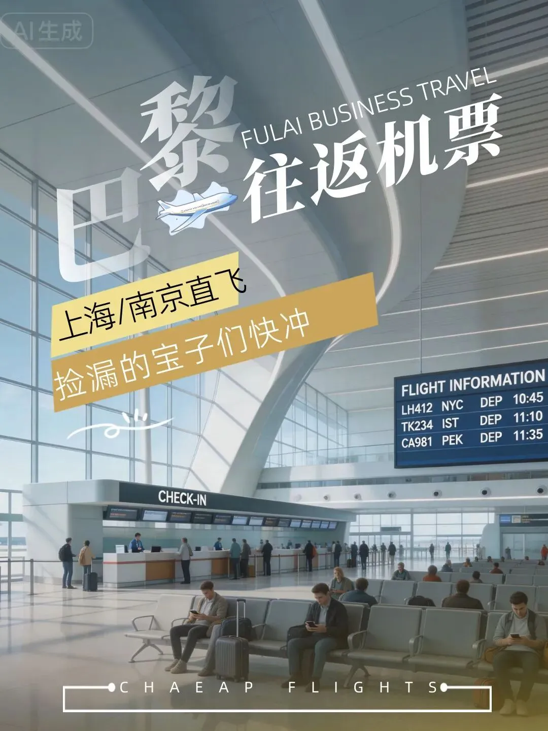 巴黎飞上海/南京多条航线放出“捡漏价”,