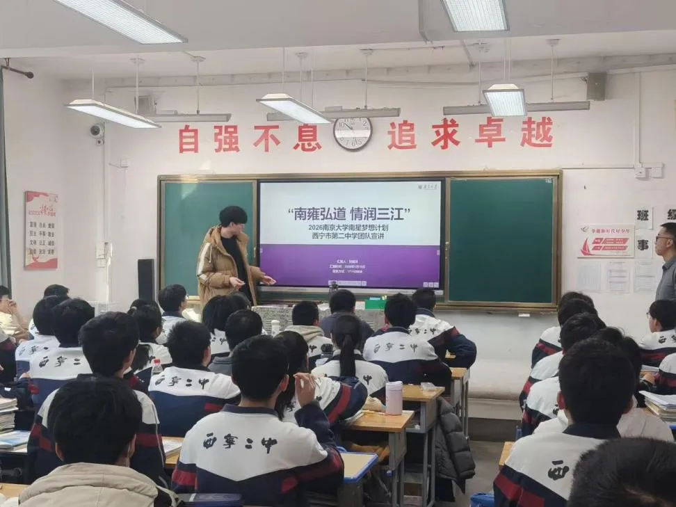 1月19日,南大寒假宣讲团一行八人走进湟川中学,开启南星梦想计划首场宣讲。宣讲团以南大宣传片为引,从学科实力、师资力量、校园风貌等方面,全方位展现百年南大的深厚底蕴与时代担当。