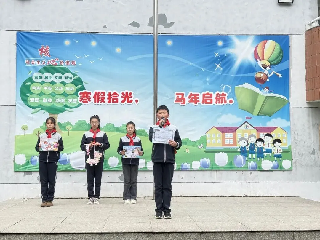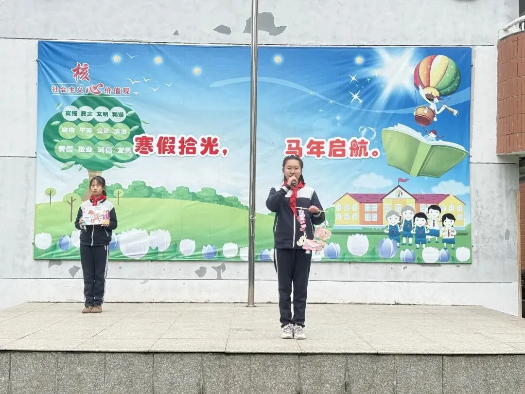 寒假期间,学校围绕文化传承、研学实践、安全自护开展丰富多彩的活动,少先队员在体验中收获、在实践中成长,生动践行“生成教育”。队员代表依次上台分享寒假见闻与收获,充分展现了“实践出真知、体验促成长”的生动模样。