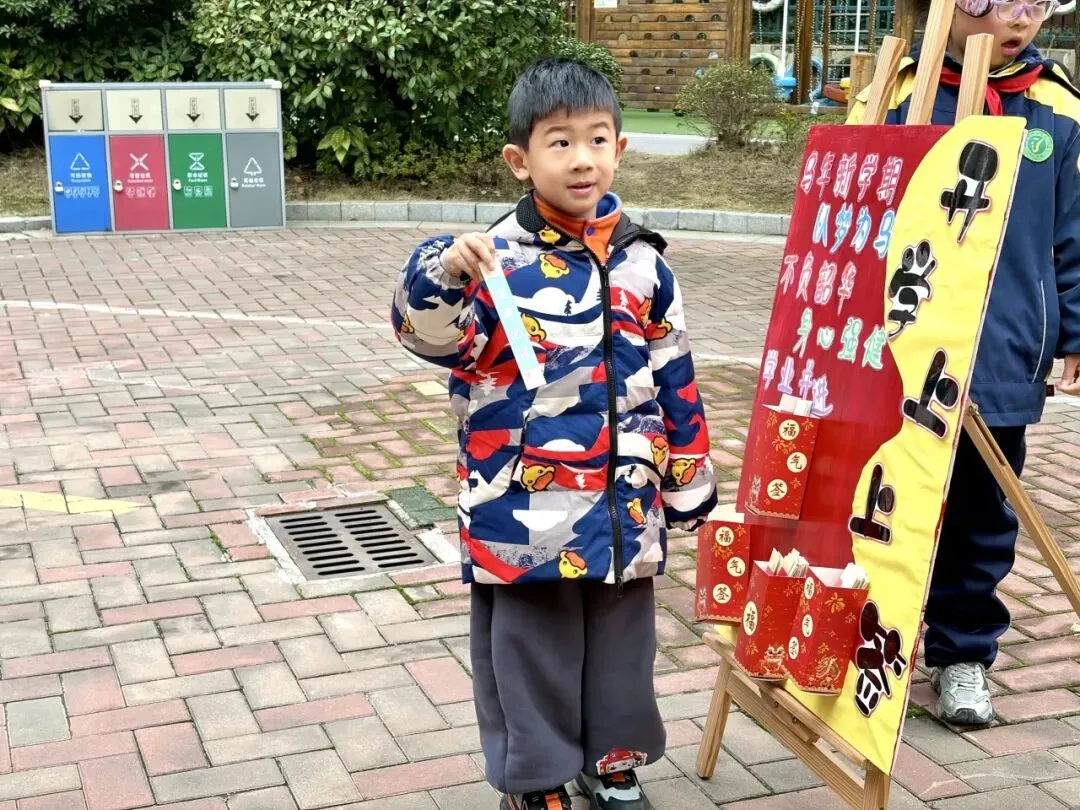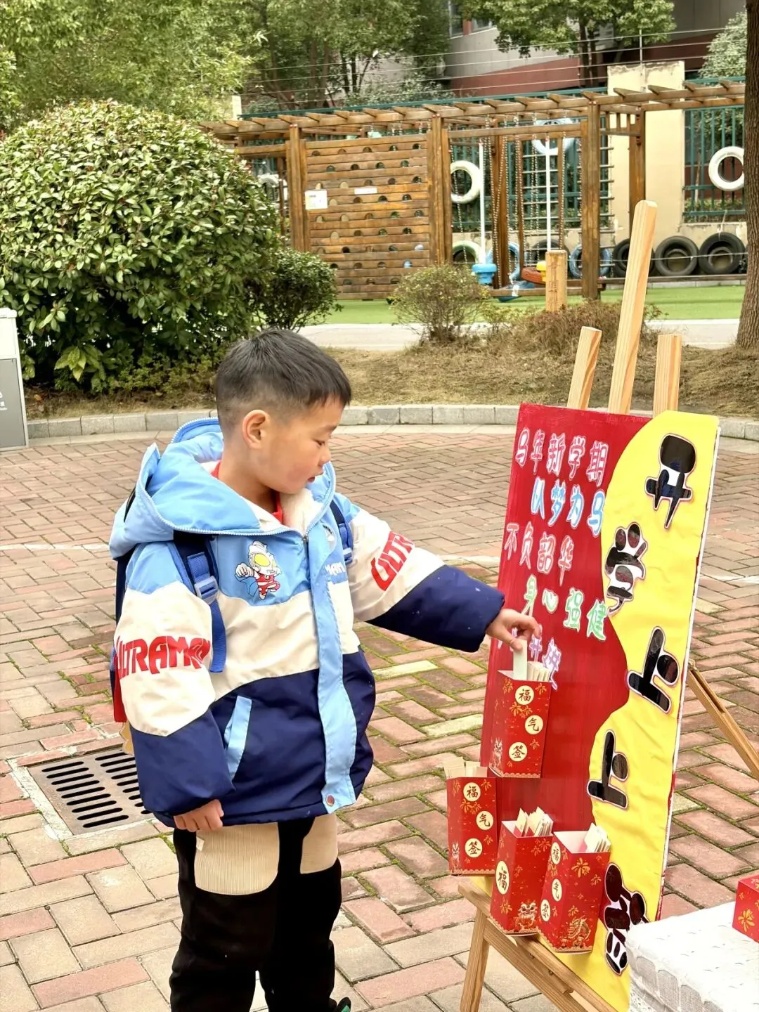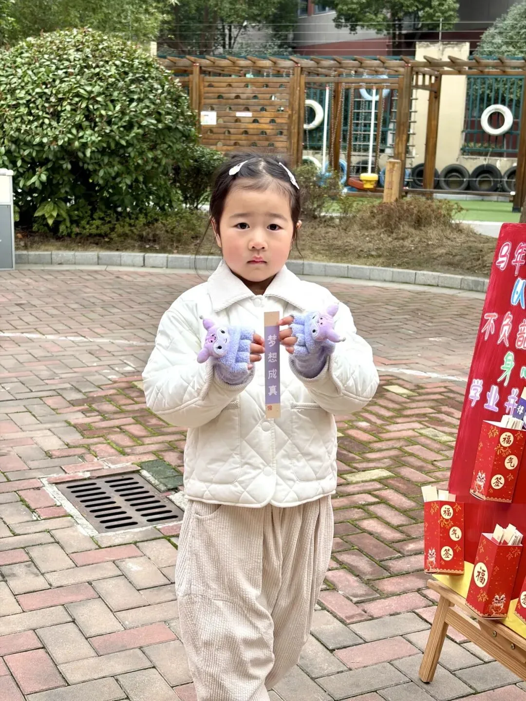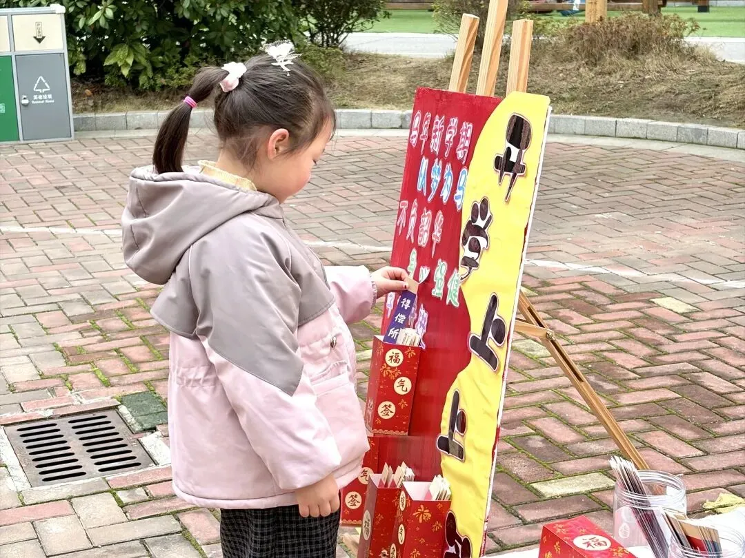 最受孩子们期待的,当属新年福气抽福签环节。搓搓小手,或犹豫或坚定地抽出一支福签——“我抽到的是聪明伶俐!”“我抽到的是学习进步!”......欢声笑语洒满校园,一张张小小的福签,承载着幼儿园对孩子们最真诚、最真挚的祝愿。