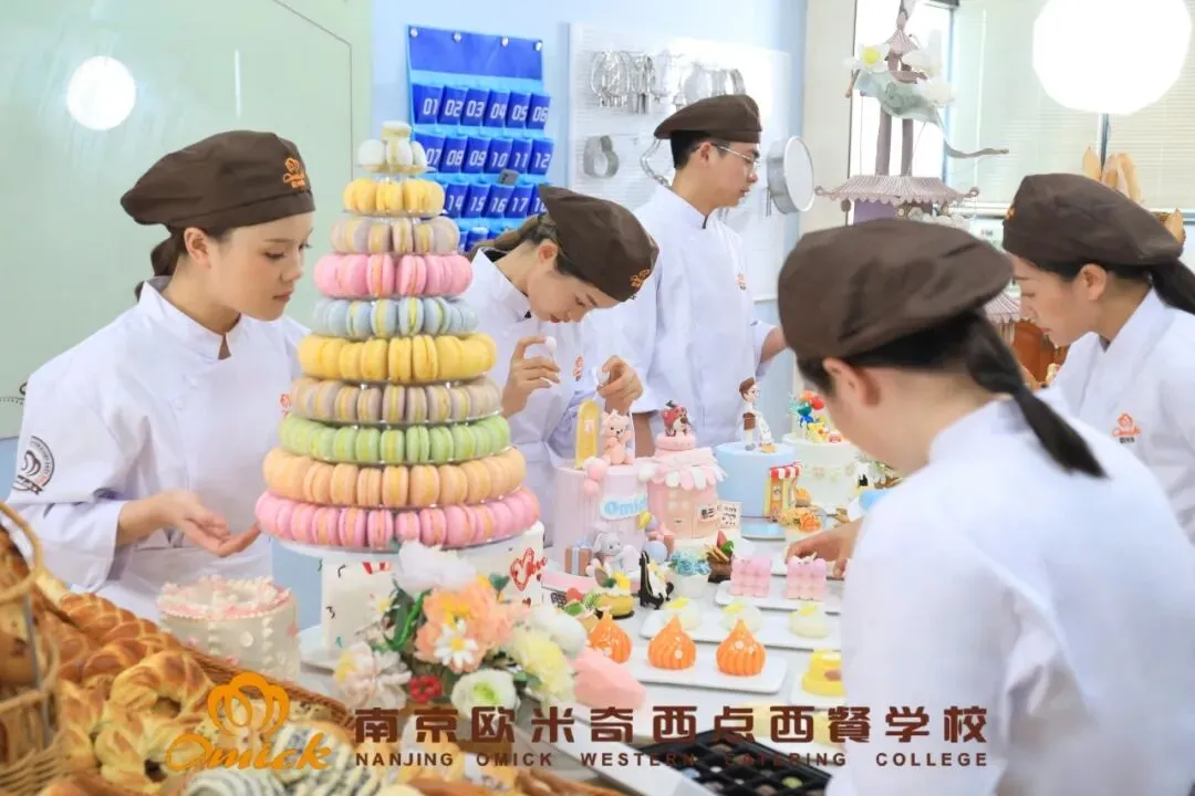 南京欧米奇和传统的文化理论课堂截然不同,全实操课程才是这里的 “主角”!走进实训教室,就像提前踏入了未来的工作场地。从烘焙间里的专业烤箱、搅拌机,到裱花间里精致的裱花台、各种裱花嘴,每一处细节都还原真实工作场景。没有枯燥的理论灌输,拿起工具直接上手实操,在一次次练习中学会举一反三。每天走进南京欧米奇,空气中都弥漫着香甜的味道。新鲜出炉的面包,表皮酥脆,内里柔软;精致的甜品慕斯,入口即化,细腻丝滑;还有造型各异的蛋糕,每一款都像是艺术品。在这里,不仅能大饱口福,满足味蕾的享受,更能在品尝美食的过程中学习制作技巧。一边吃着美味的点心,一边跟着老师学习配方、制作方法,轻松掌握烘焙和西点制作的精髓,这种学习方式简直太快乐啦!南京欧米奇拥有宽敞明亮的校园,欧式风格的建筑充满浪漫与典雅。累了,就去花园式的休息区坐坐,呼吸新鲜空气,放松身心;饿了,宽敞明亮的餐厅提供丰富多样的美食。在这样的环境里学习,心情都格外舒畅,学习效率自然也高!学校为同学们准备了舒适的学生公寓,这里就是大家的 “第二个家”。晚上躺在床上,聊聊一天的趣事,分享学习的心得;周末一起在宿舍里追剧、玩游戏,增进彼此的感情。在南京欧米奇,不仅能学到技能,还能收获珍贵的友谊!在南京欧米奇,各种各样的校园活动让人应接不暇。喜欢运动,就参加校园运动会,在场地上尽情展示自己的天赋;热爱艺术,创意西点设计大赛就是你的舞台,发挥想象力,打造独一无二的西点作品;要是想休闲放松,学校活动室有各种好玩的项目等你挑战。学校经常举办各类技能竞赛,同学们都积极参与。在竞赛中,大家相互切磋,发现自己的不足之处,学习他人的优点。每一次竞赛都是一次成长的机会,看着自己在比赛中不断进步,获得荣誉,那种喜悦和自豪无法言表。技能的碰撞,总能绽放出绚丽的火花,激励着大家不断向前!