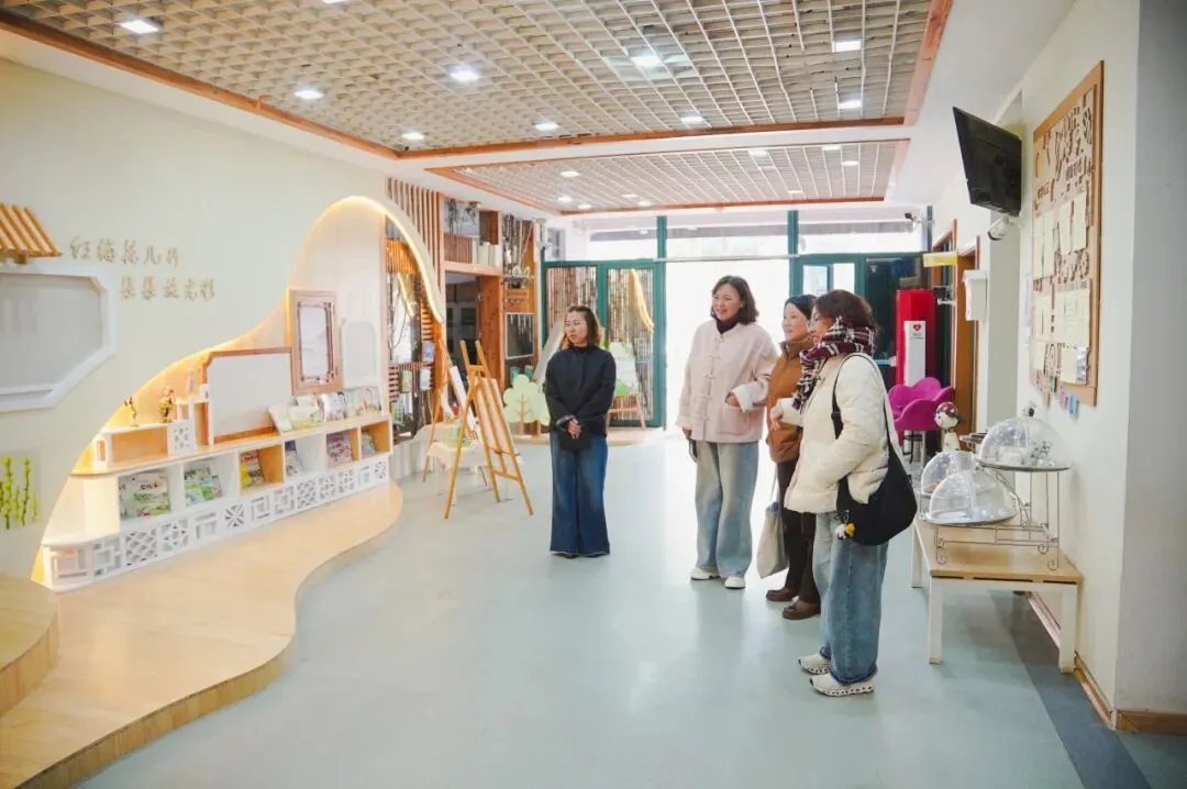 随后,视导组成员深入幼儿园室内外各处,开展全面细致的实地查看。重点对翁家营园寒假期间完成的门厅改造项目进行考察:红幼以“梅花文化”为精神内核,精心推进门厅环境升级改造,通过文化氛围营造与空间功能优化,既打造了富有童趣、兼具教育意义的活动场景,更让坚韧不拔、谦逊向上的梅花品格潜移默化浸润师幼心灵。视导组对改造后环境中蕴含的文化底蕴与教育价值给予充分肯定,同时强调,园所环境既要彰显特色内涵,更要坚守整洁、安全底线,为孩子们筑牢健康舒适的学习生活空间。