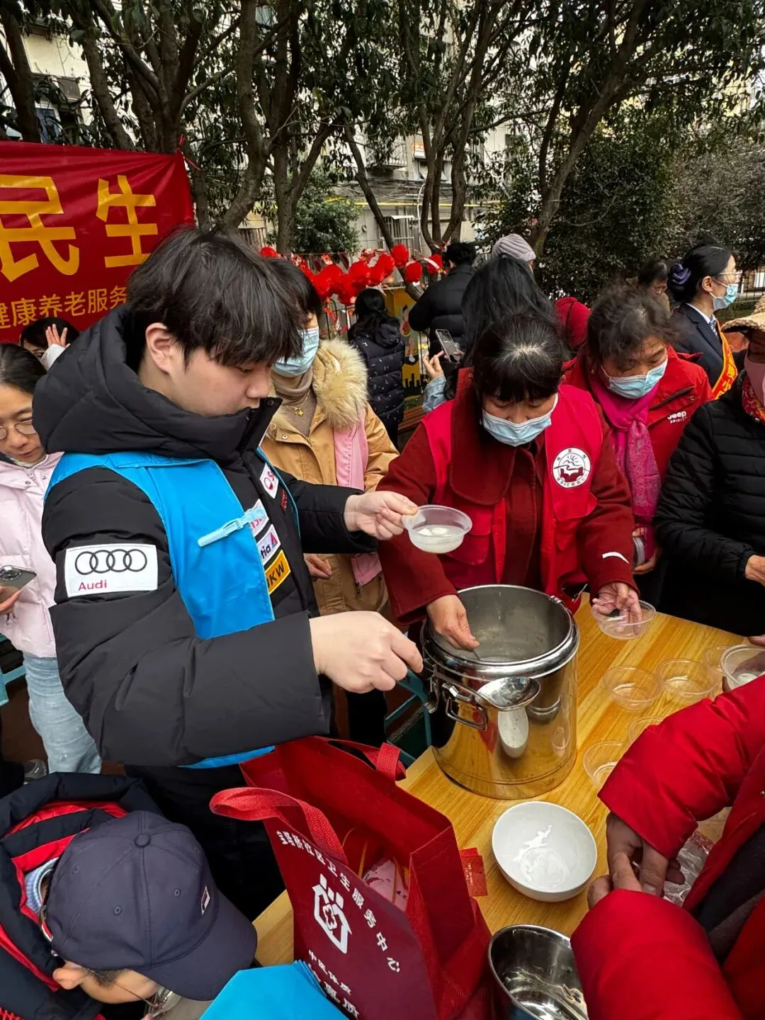 活动现场,实践团成员化身学雷锋志愿者,分工协作、细致周到,揉煮汤圆、分装盛递,每一个动作都饱含诚意,每一碗汤圆都承载着节日祝福与志愿温情。从搀扶老人就座,到为高龄居民上门送汤圆,学子们把雷锋精神的温暖,藏进点滴细节,送到居民心坎上,让社区的元宵氛围更添暖心底色。