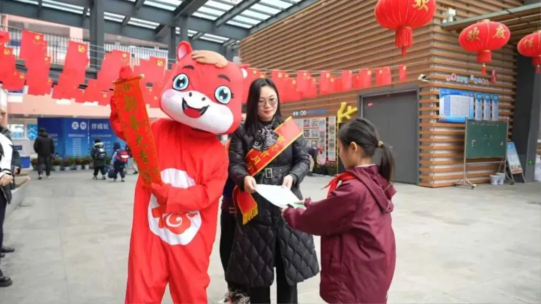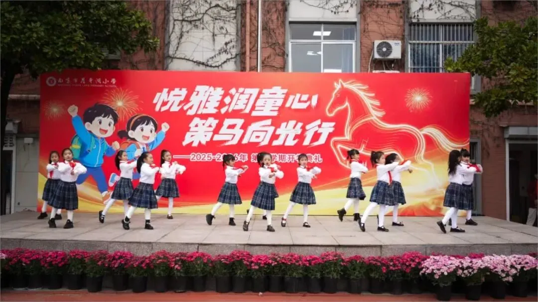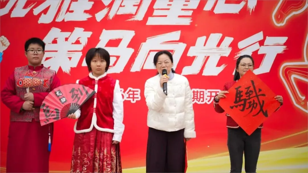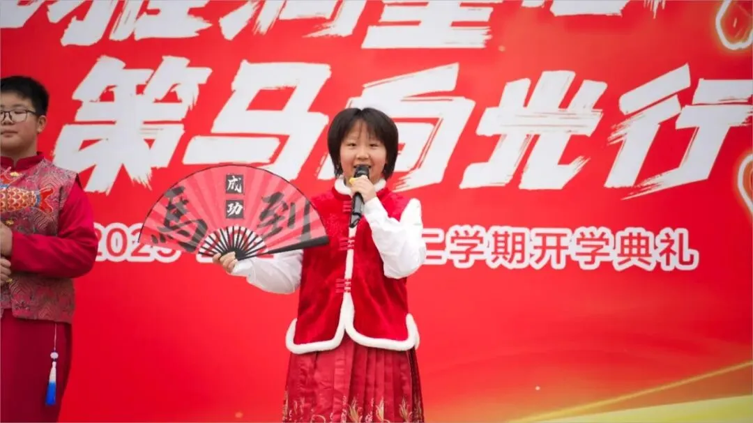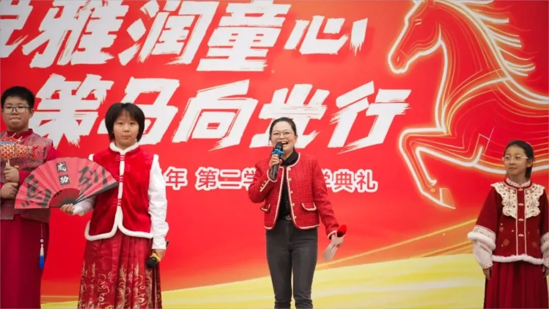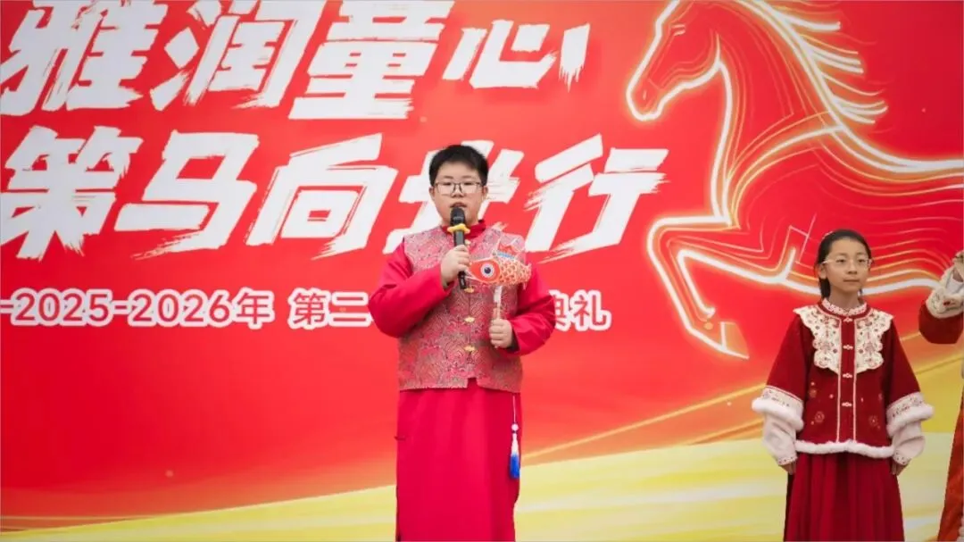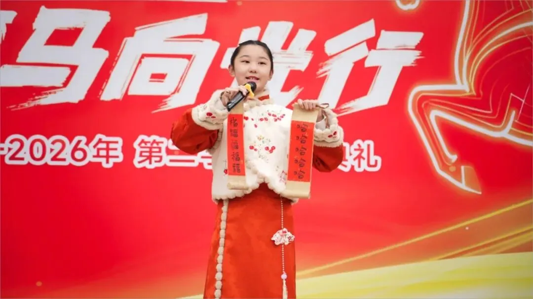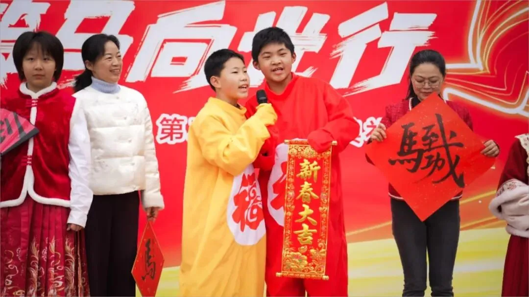 随后,舞蹈《少年有志》精彩上演,学子们身姿挺拔、舞步灵动,用昂扬的姿态展现了月牙湖小学学子奋发向上、奋勇争先的精神风貌,赢得现场阵阵掌声。马年说马,喜乐传情。活动中,学校属马的两位老师与学生代表登台亮相,他们带着满满的热情与真挚的祝福,向全体师生送上马年寄语,传递并肩前行的力量。